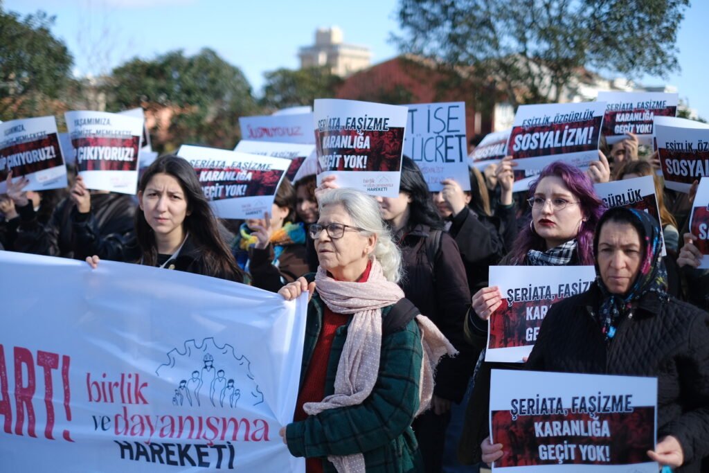 Dinci gericilik bir dünya görüşü değildir; gericilik kadının hayatını kuşatan ve toplumsallaştıkça yaşamımızı tehdit eden başlı başına bir tehdittir. Tarikatların, cemaatlerin, gerici vakıf ve derneklerin müridi olmayacağımızı haykırıyoruz!
