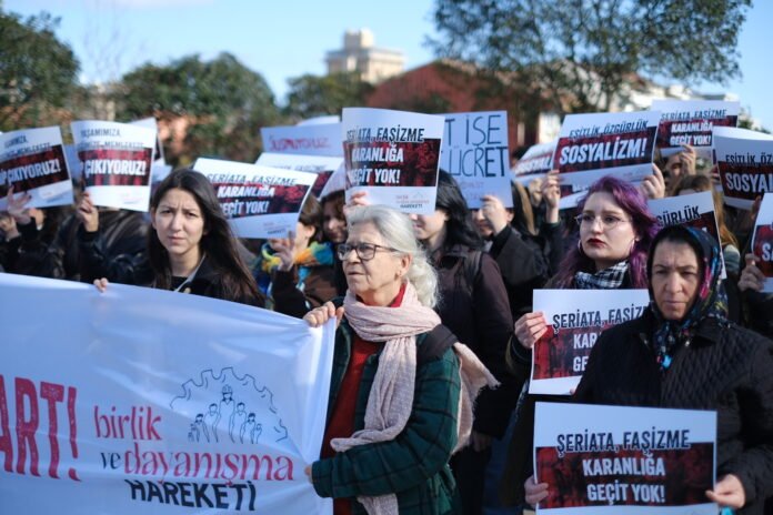 Bugün ülkemiz ve kadınlar ağır bir kuşatma altındadır. İktidarı, sermayesi, tarikatları- cemaatleri, mafya ve çeteleriyle kadınlar dört bir yandan kuşatılırken; yoksulluk, gericilik, baskı ve korkutma ikliminde yaşamlarını devam ettiriyorlar. Bu iklimi yaratanlar; bizden boyun eğmemizi, kabul etmemizi ve sinmemizi bekliyorlar. Tüm olanaklarıyla kadınlara, çocuklara, emekçilere saldıran AKP ve onun işbirlikçi düzenine bir kez de 8 Mart günü buradan sesleniyoruz: Kadınlar dün olduğu gibi bugün de sizin karanlığınıza geçit vermeyecek!